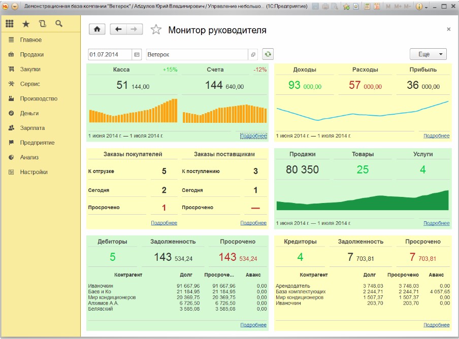 · Продажи и закупки: В системе можно вести полный учет заказов, контролировать процесс выполнения сделок, формировать документы и управлять взаимоотношениями с поставщиками и клиентами.