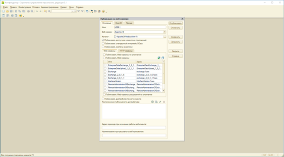 Публикация базы 1С на веб-сервере: Apache и IIS