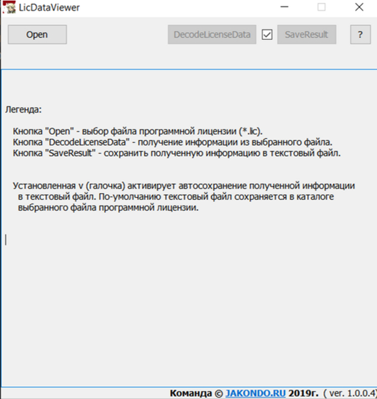 ➜ Запускаете exe-шник ➜ Open ➜ Выбираете файл лицензии .lic который нужно расшифровать (находятся они в папке C:\ProgramData\1C\licenses)