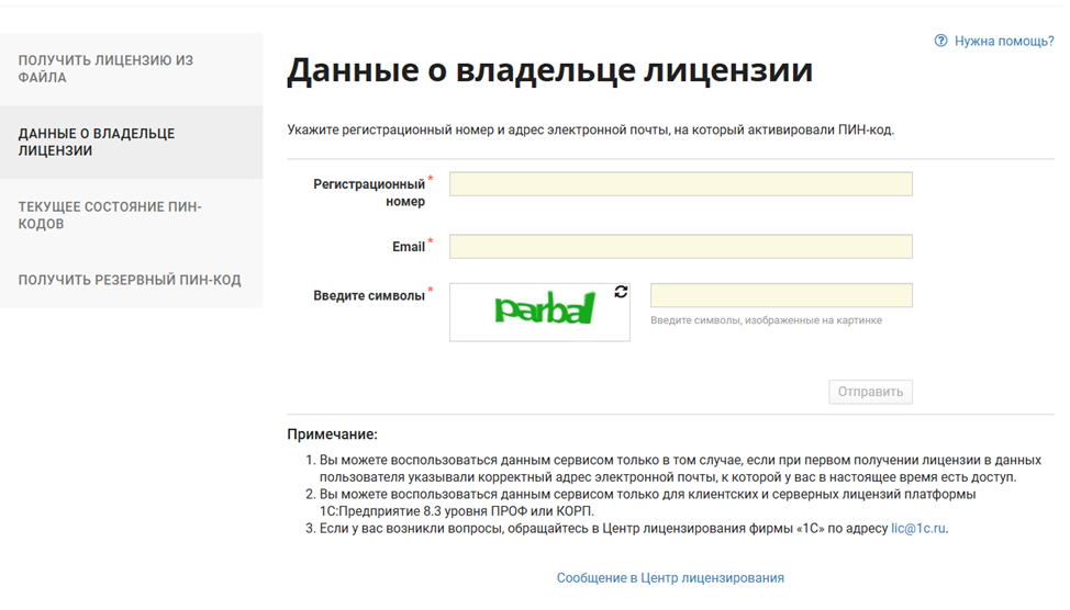 А) Относится, когда у нас имеется регистрационный номер продукта и доступ на рабочий активный e-mail, указанный при первичной регистрации на который нам придется ответ о данных владельца лицензии. Для получения этих данных нам надо перейти на официальный сайт фирмы 1С https://portal.1c.ru/support/license/license-owner. Выбрать раздел данные о владельце лицензии.