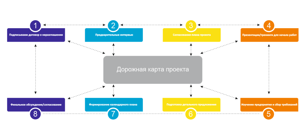 дорожная карта проекта: последовательность этапов и распределение функций;